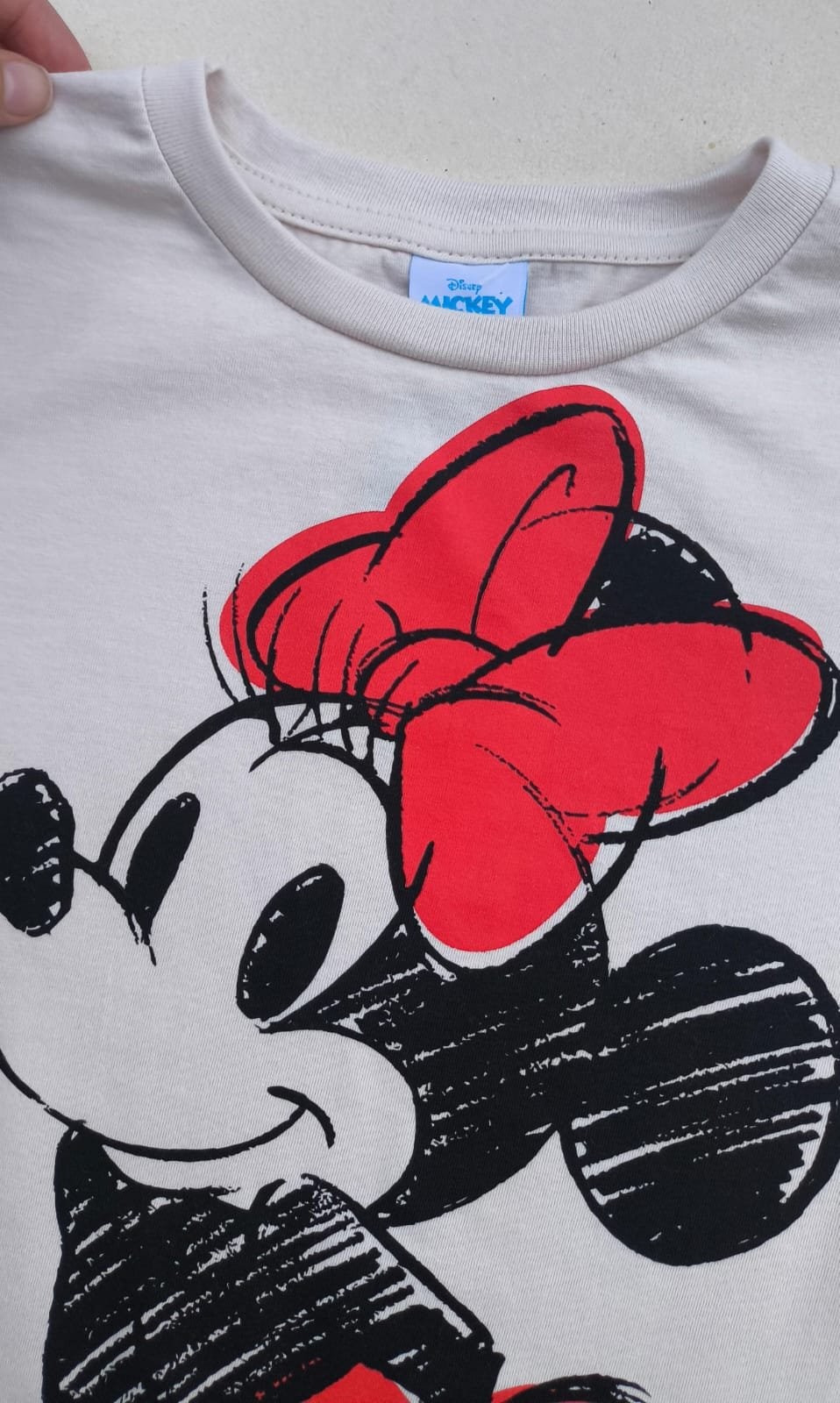 Essa camiseta da Minnie é aquele tipo de peça que conquista no primeiro olhar: estampa super fofa, traços estilosos e o toque clássico do laço vermelho que deixa qualquer look mais encantador.