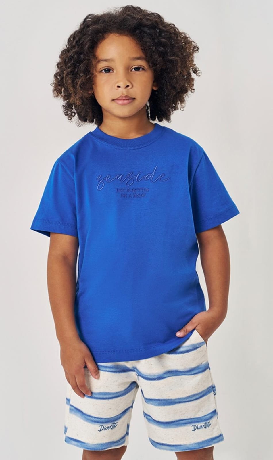 Com a camiseta Seaside e o short listrado superconfortável, seu pequeno vai curtir os dias de sol com muito estilo e liberdade.