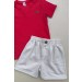 Este conjunto encantador — camiseta vermelha com toque macio e short claro super leve — é perfeito para acompanhar o dia a dia do seu menino com muito charme e liberdade.