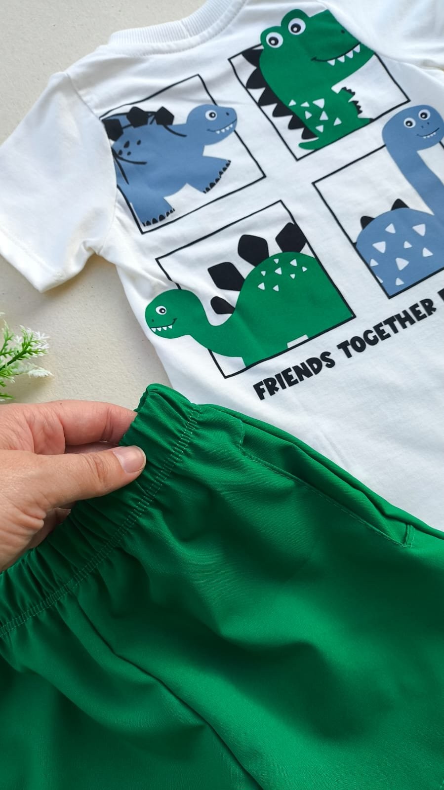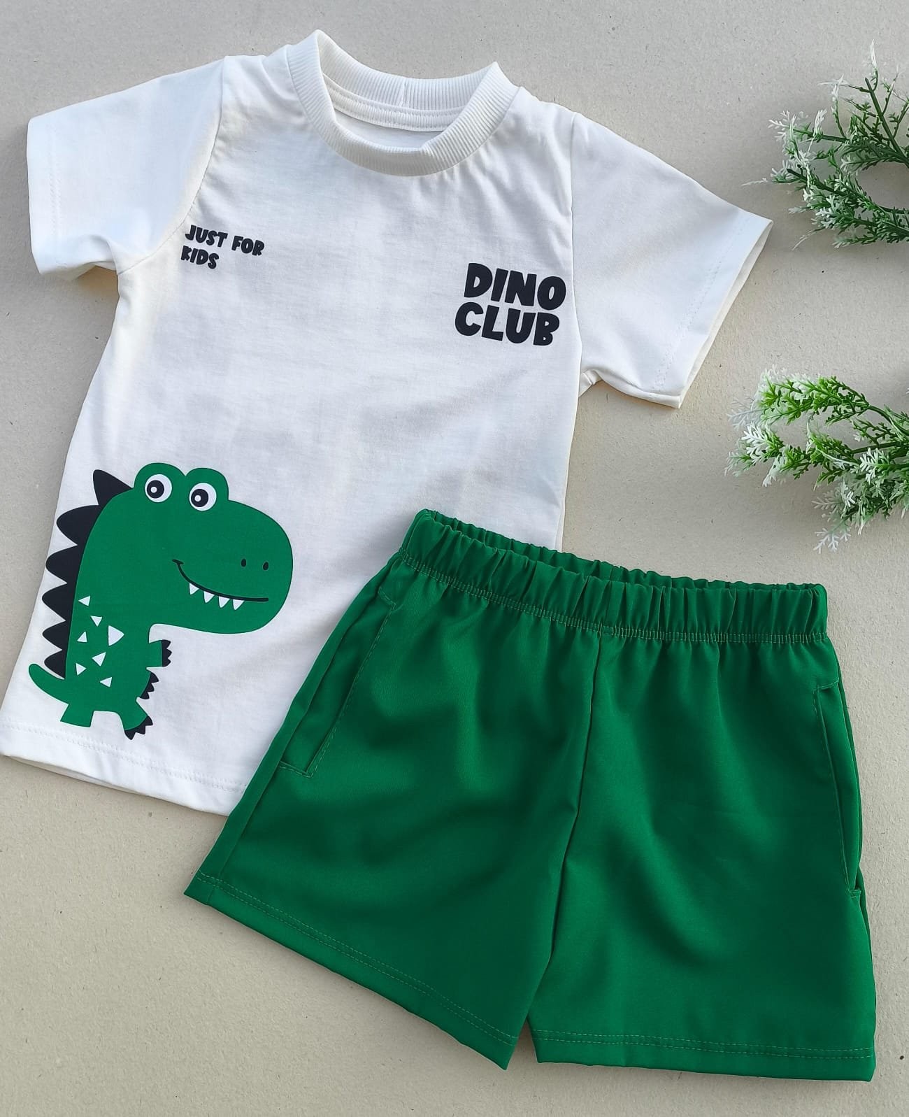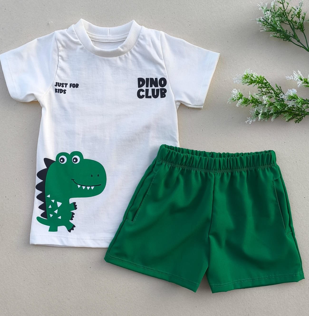 A camiseta fofíssima com estampa de dinossauro + shortinho leve e confortável garante liberdade nos movimentos e um charme irresistível.