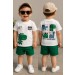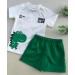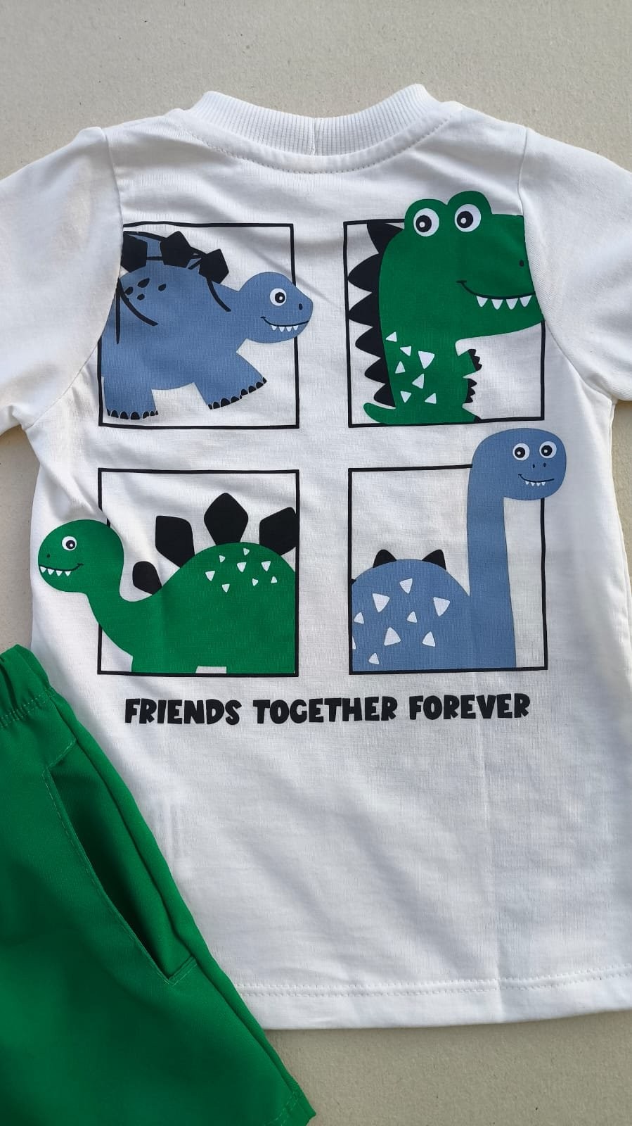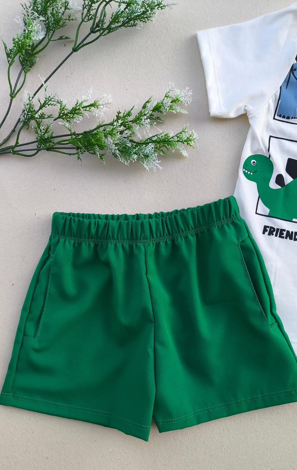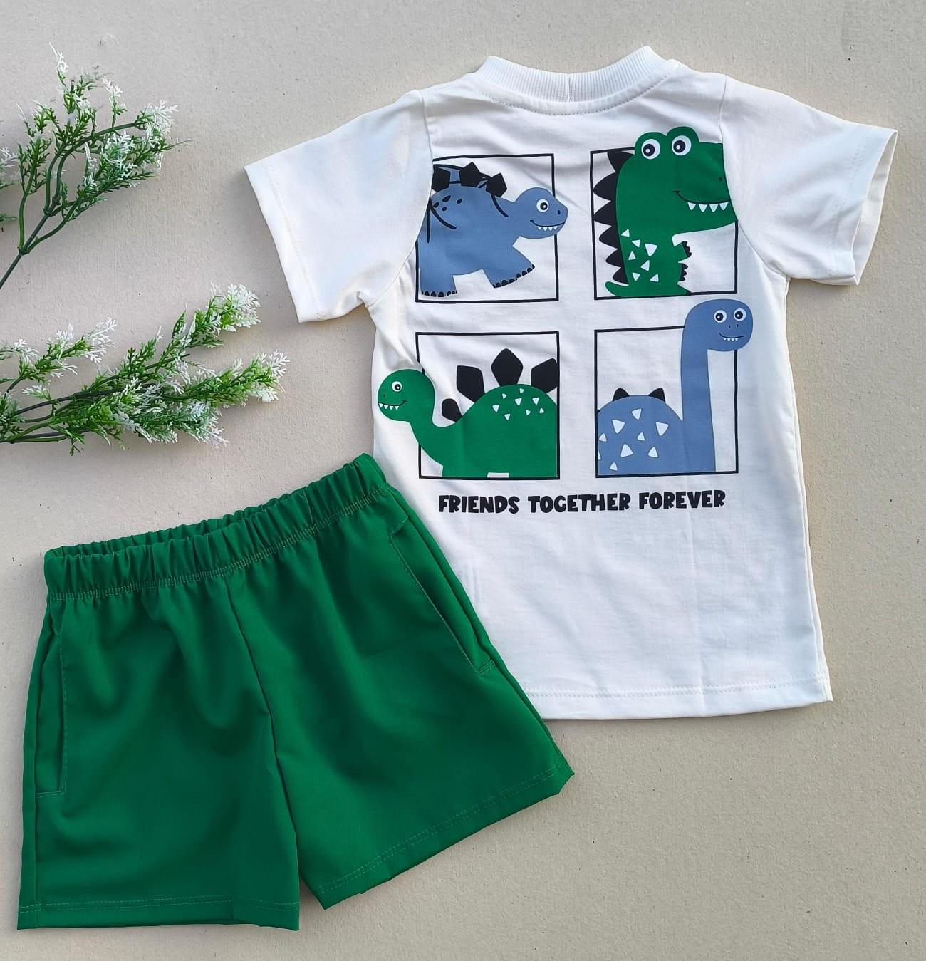 A camiseta fofíssima com estampa de dinossauro + shortinho leve e confortável garante liberdade nos movimentos e um charme irresistível.