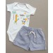 Esse conjuntinho é a escolha perfeita para os dias alegres do seu pequeno — o body traz uma estampa super divertida com girafa e hipopótamo, enquanto o shortinho cinza com cordão completa o visual com muito estilo e praticidade.