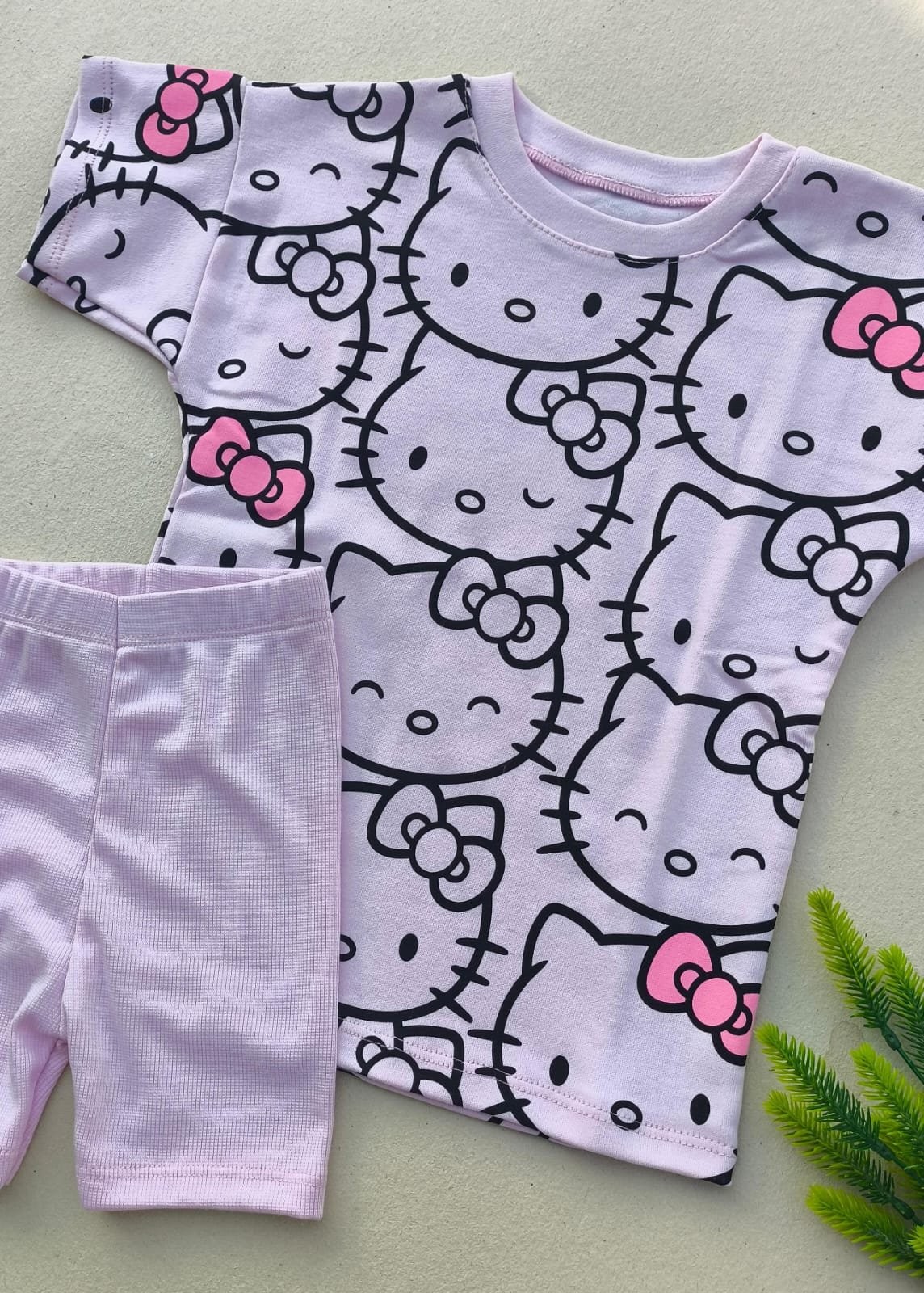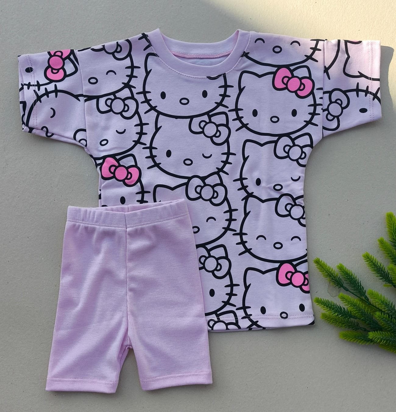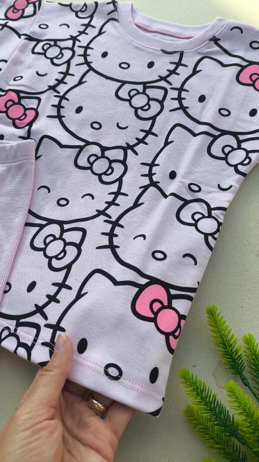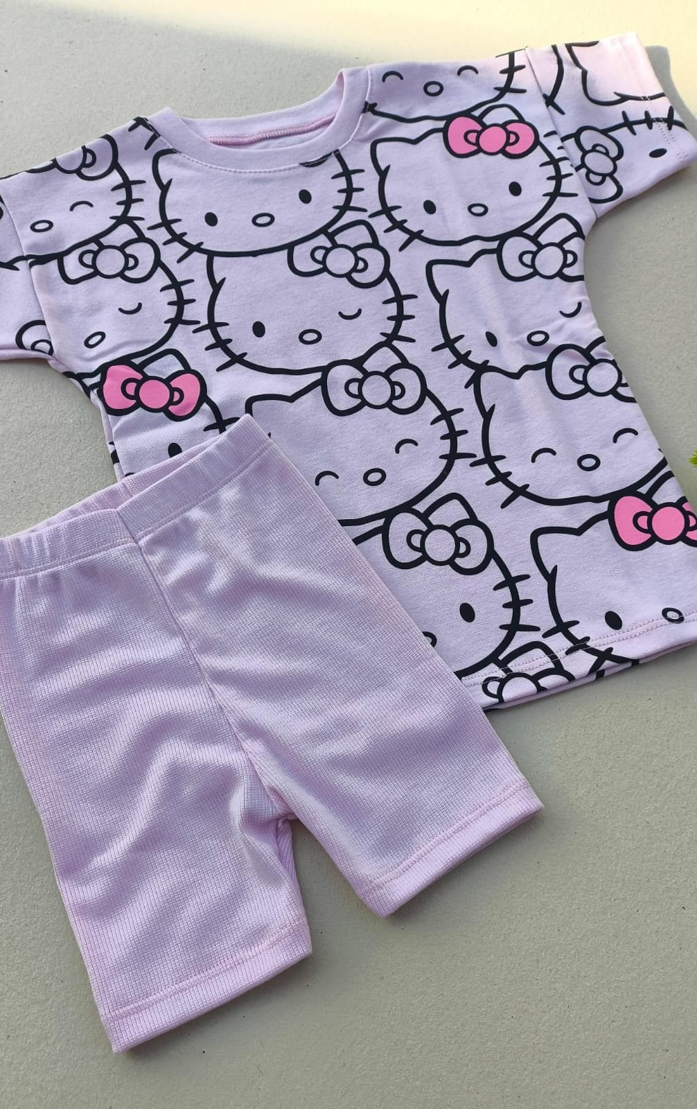 A blusinha ampla com estampa divertida da Hello Kitty traz charme e estilo, enquanto o short em malha canelada com elastano leve garante liberdade para brincar o dia todo.