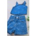 Esse conjunto é puro charme — top e short jeans com delicados lacinhos que deixam o look ainda mais encantador
