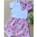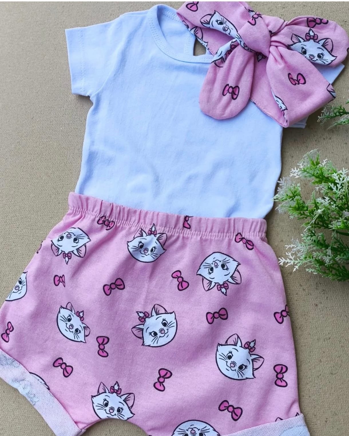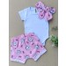 Body, shorts e laço para o cabelo