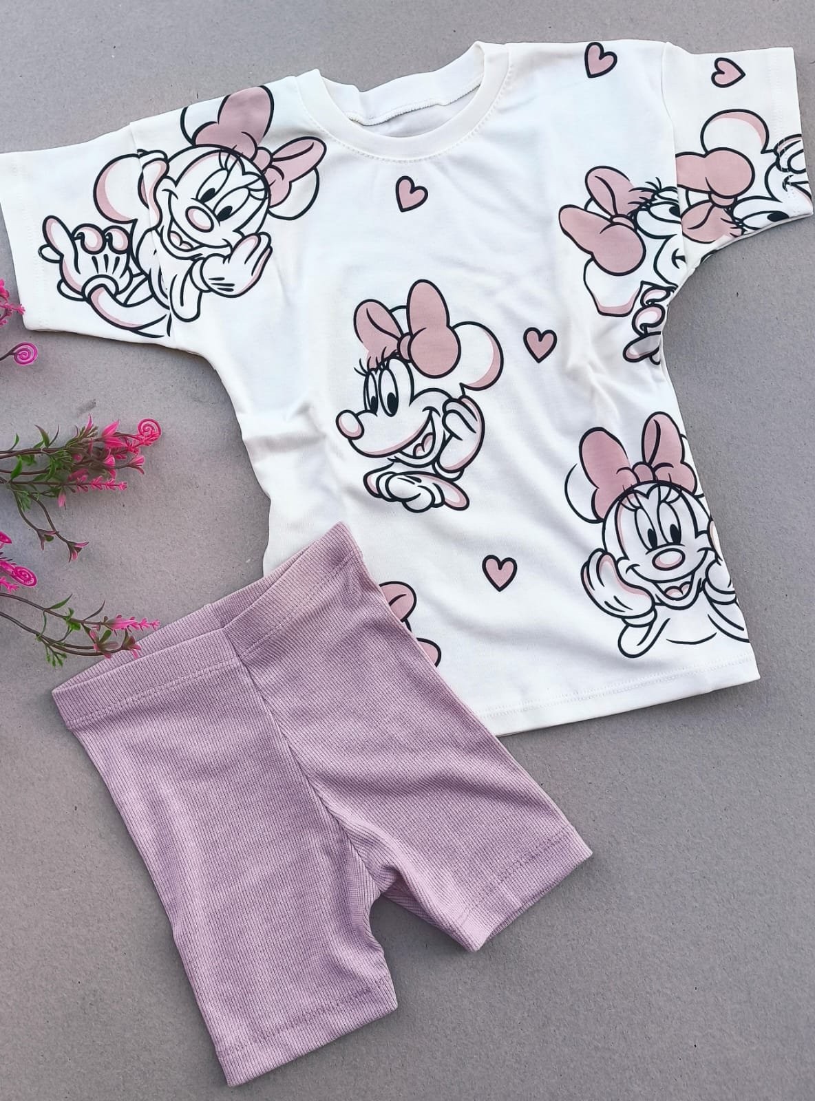 Estampa linda da Minnie com corações, que deixa o look delicado e super charmoso.