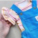 Salopete em Sarja Jeans, bolso e alças de regulagem com botões, elástico nas costas.