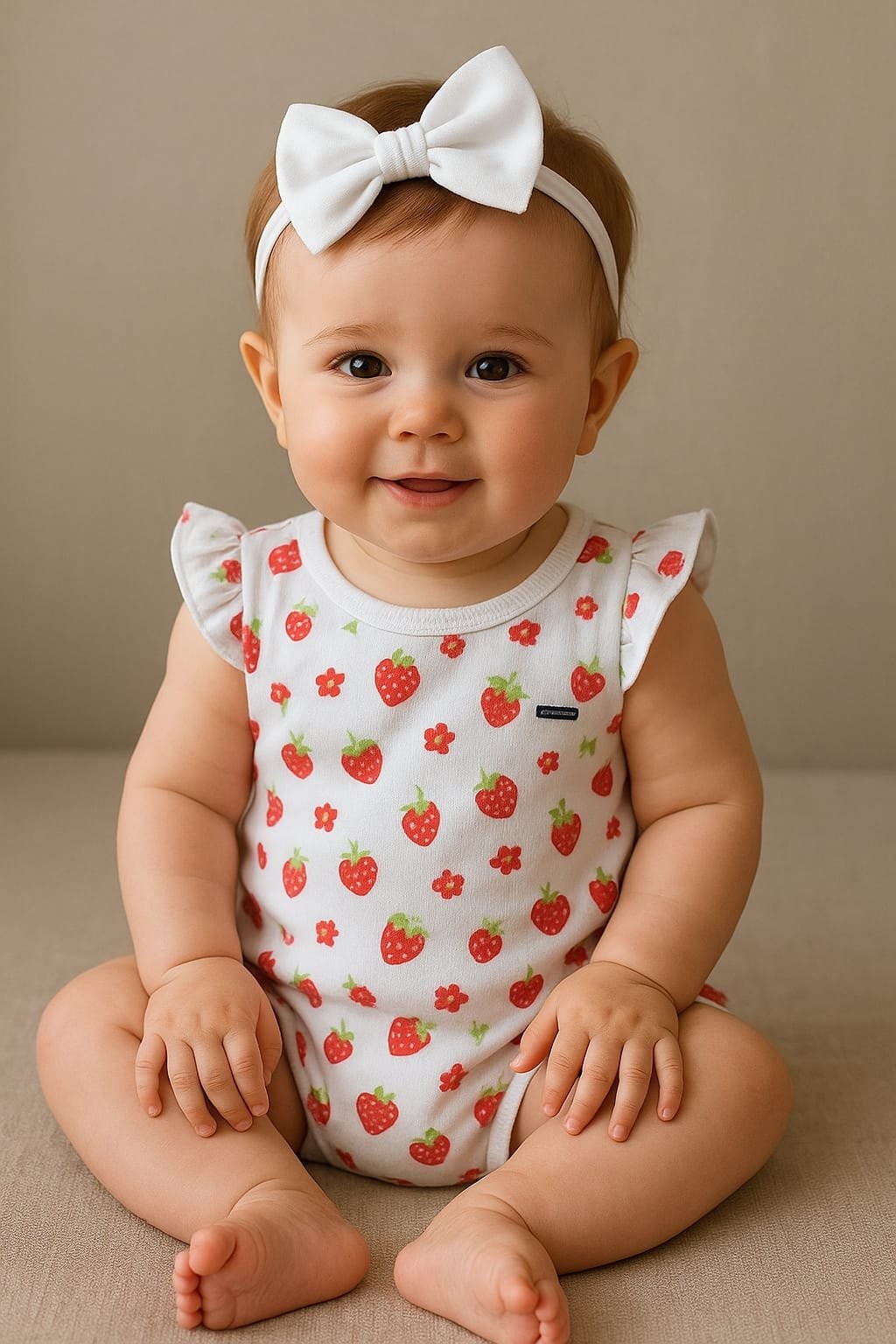 Esse macacão Moranguinho 100% algodão, em suedine Premium, é a escolha perfeita para unir delicadeza, estilo e qualidade em uma única peça.