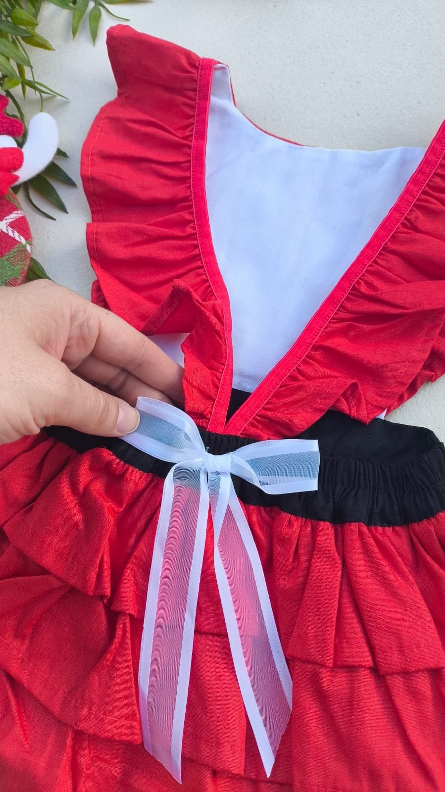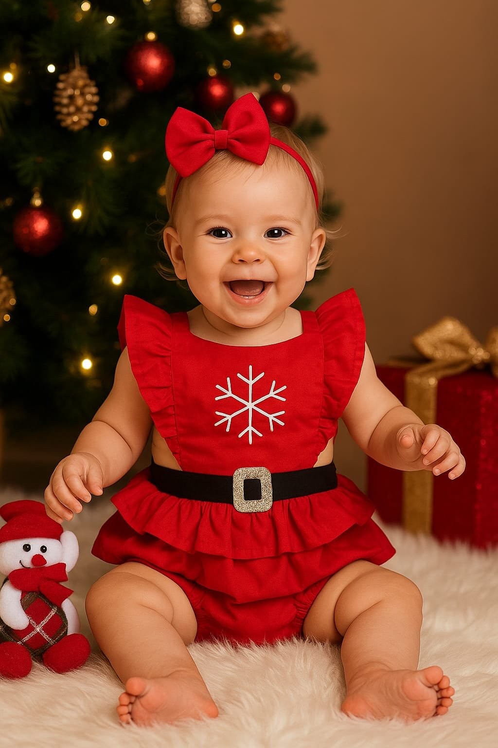 Apresentamos nosso romper natalino exclusivo, feito com tecido leve e confortável, perfeito para deixar sua pequena ainda mais linda nas festas de fim de ano.