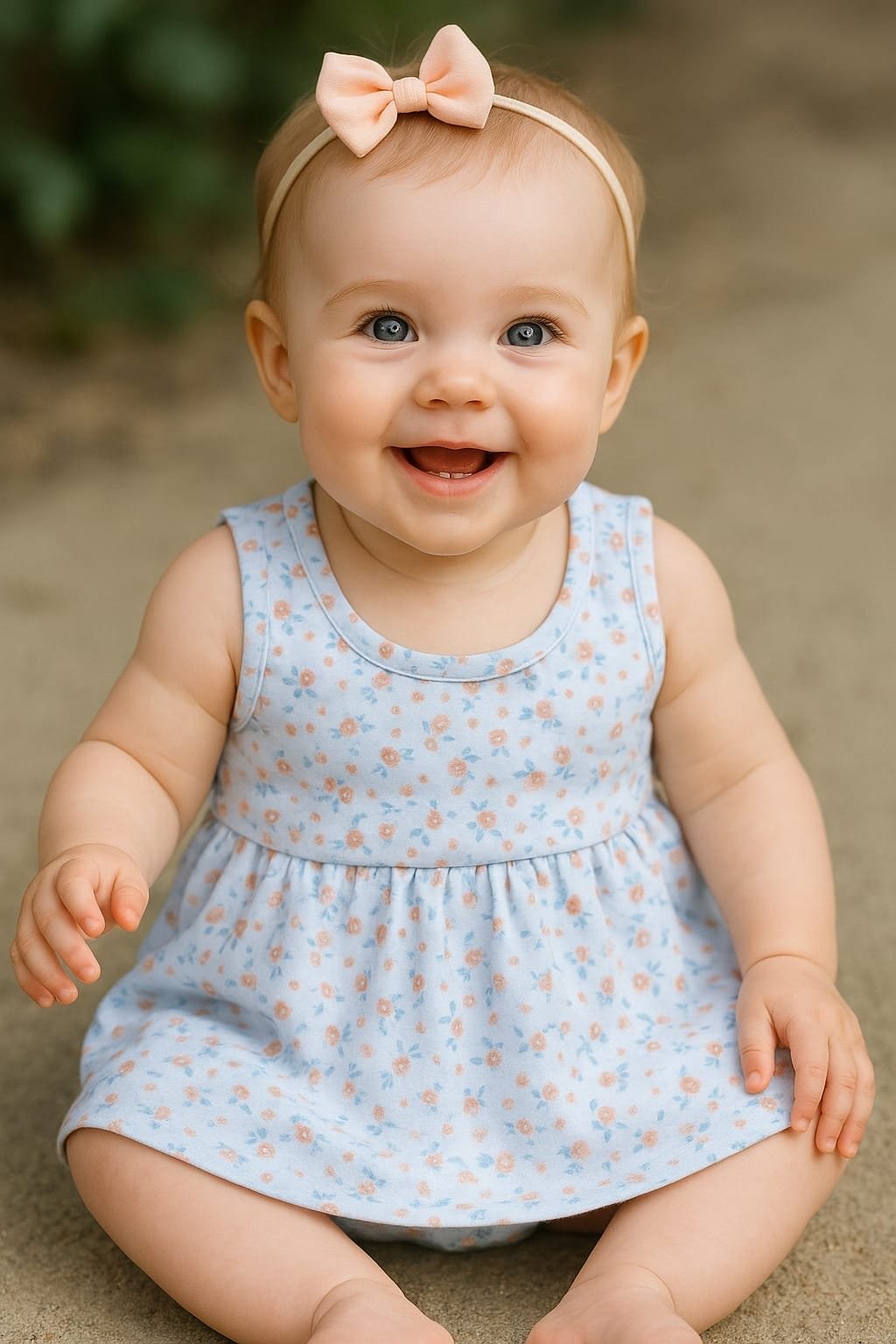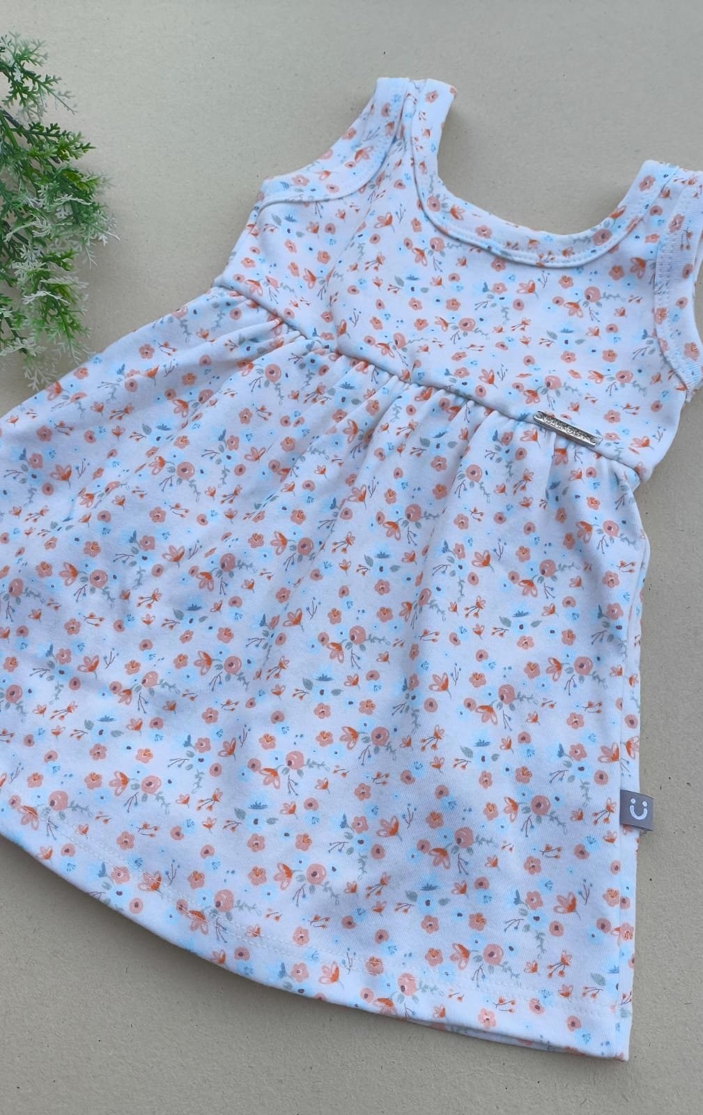 Feito com 100% algodão premium, esse modelo une o conforto do body com a delicadeza do vestido floral — perfeito para acompanhar o bebê em cada movimento com leveza e suavidade.