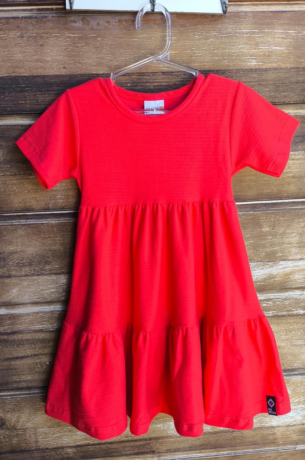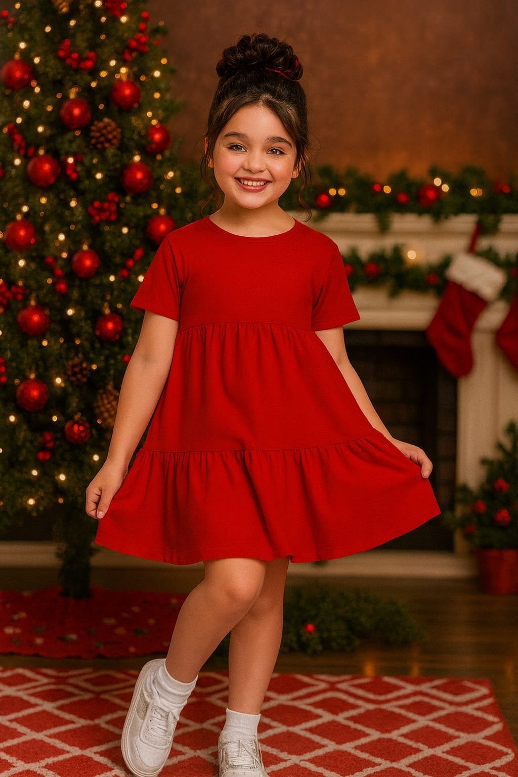 Confortável, leve e com esse vermelho vibrante que chama atenção de longe, o vestido traz aquele caimento soltinho que deixa a pequena livre para brincar, correr e sorrir à vontade.