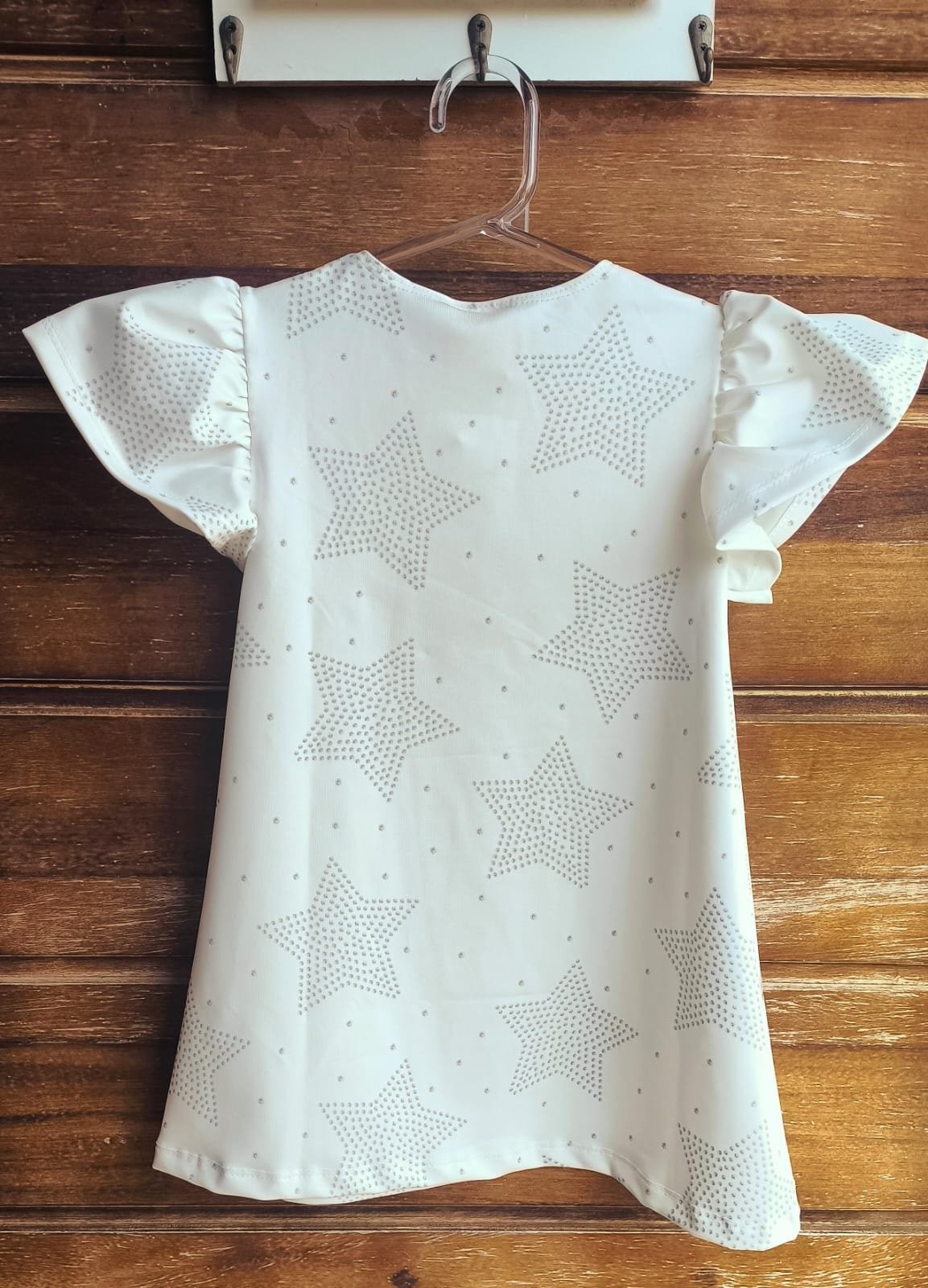 Esse vestidinho traz toda a delicadeza que sua princesa merece: tecido leve e confortável, manguinhas fofas e um design apaixonante com ursinha bailarina cheia de brilho – cada detalhe pensado para encantar.
